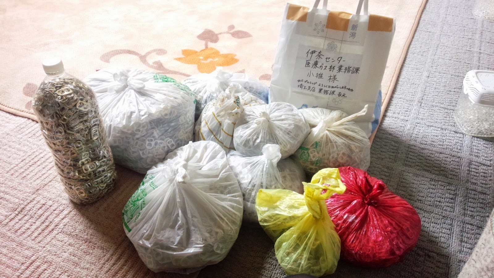 そして県内外の皆さんが集めて伊奈に送ってくれるプルタブをまとめます。